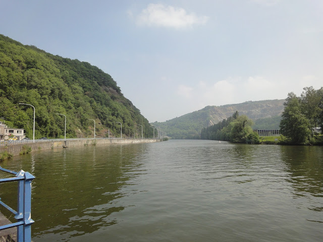 Widoczek ze strony Profondeville, na południe od Namur, na Mozę i ulokowany po drugiej stronie kamieniołom. Chyba czynny, więc tam nie chodzimy na spacery, jakby ktoś pytał.